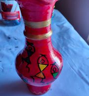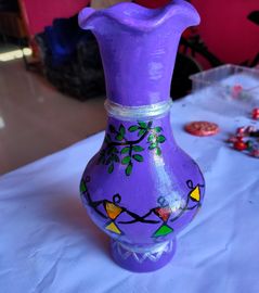 Hand painted in bright colors, these clay flower vases and pots are brought to life by traditional warli paintings.