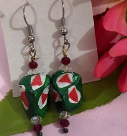 Hand painted dark green beads in various shapes