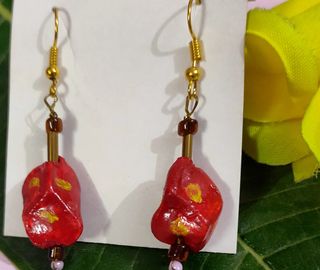 Hand painted red beads in various shapes