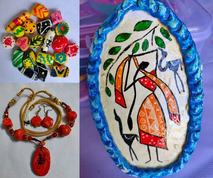 Having been involved in the process of empowering women of weaker sections for more than 20 years, we strive to run skill training workshops to help them learn to create paper maché products and Warli art.